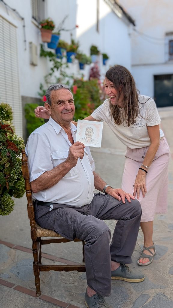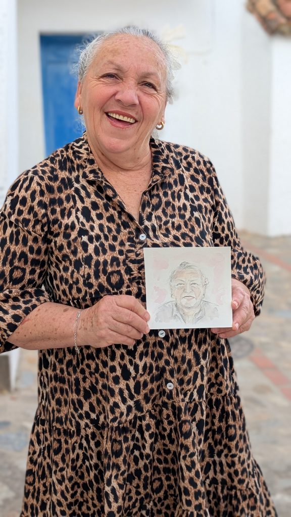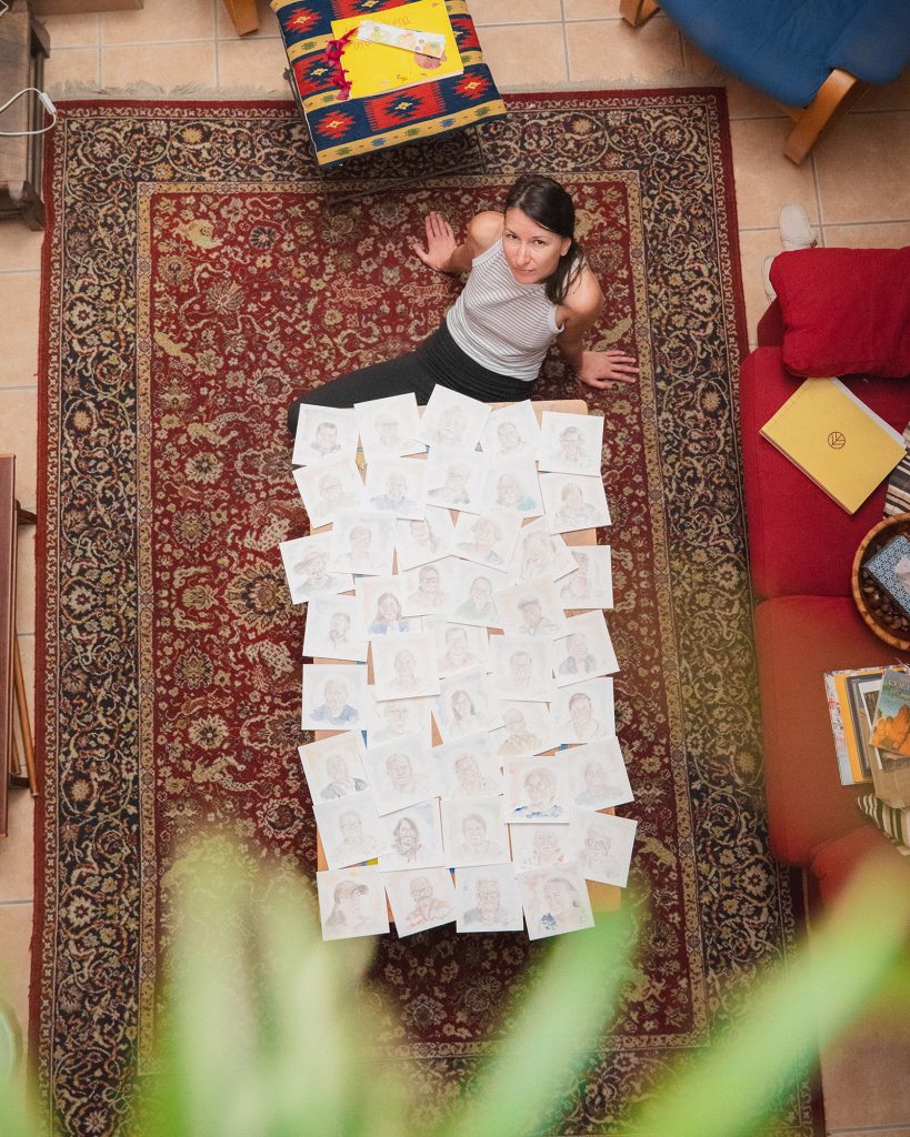 It all began in a small Spanish village, Oliete. While walking through the streets with my supplies, I wanted to connect with the locals through my art. One by one, I drew their portraits, and after a few weeks organized an exhibition to share them. The joy and surprise on their faces sparked the beginning of the project. From there, it traveled to other villages, nursing homes and Zagreb Airport, offering travelers a quiet moment of art and a memory that carries Croatia into the world – nearly 200 souls drawn live over two years.